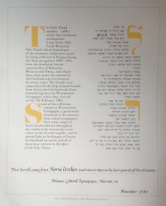 The Memorial Scrolls Trust, a U.K. non-profit organization, has recently begun to reach out to synagogues and other instititutions who received the Czech scrolls to gather updated information about them. They plan to continue to enhance their website so it becomes “a repository of all knowledge concerning the 1564 scrolls, the Jewish history of the towns they came from, the Jews of those towns, their fate, survivors stories, photos etc. Also where the scrolls are now, how they are used  and honoured etc.” More information about the Memorial Scrolls Trust is available on their website.